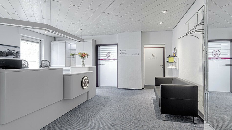 Die Praxis befindet sich im 1. OG oberhalb der Lahn-Apotheke und ist barrierefrei über unseren Aufzug erreichbar. Ob altersbedingt oder gesundheitlich auf Hilfsmittel angewiesen, Rollstuhlfahrer oder Patienten mit Rollatoren, aber auch Eltern mit Kinderwagen können mit einem Knopfdruck in unsere helle und moderne Praxis gelangen. Gleichzeitig dient der Aufzug auch als Zugang zur Lahn-Apotheke.